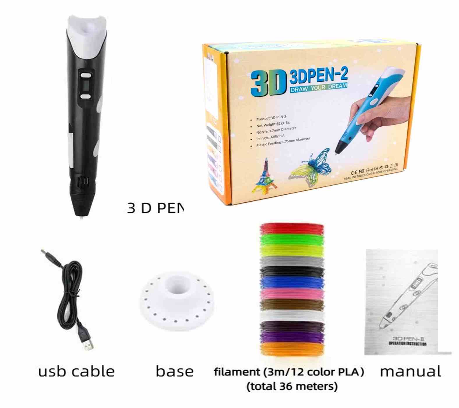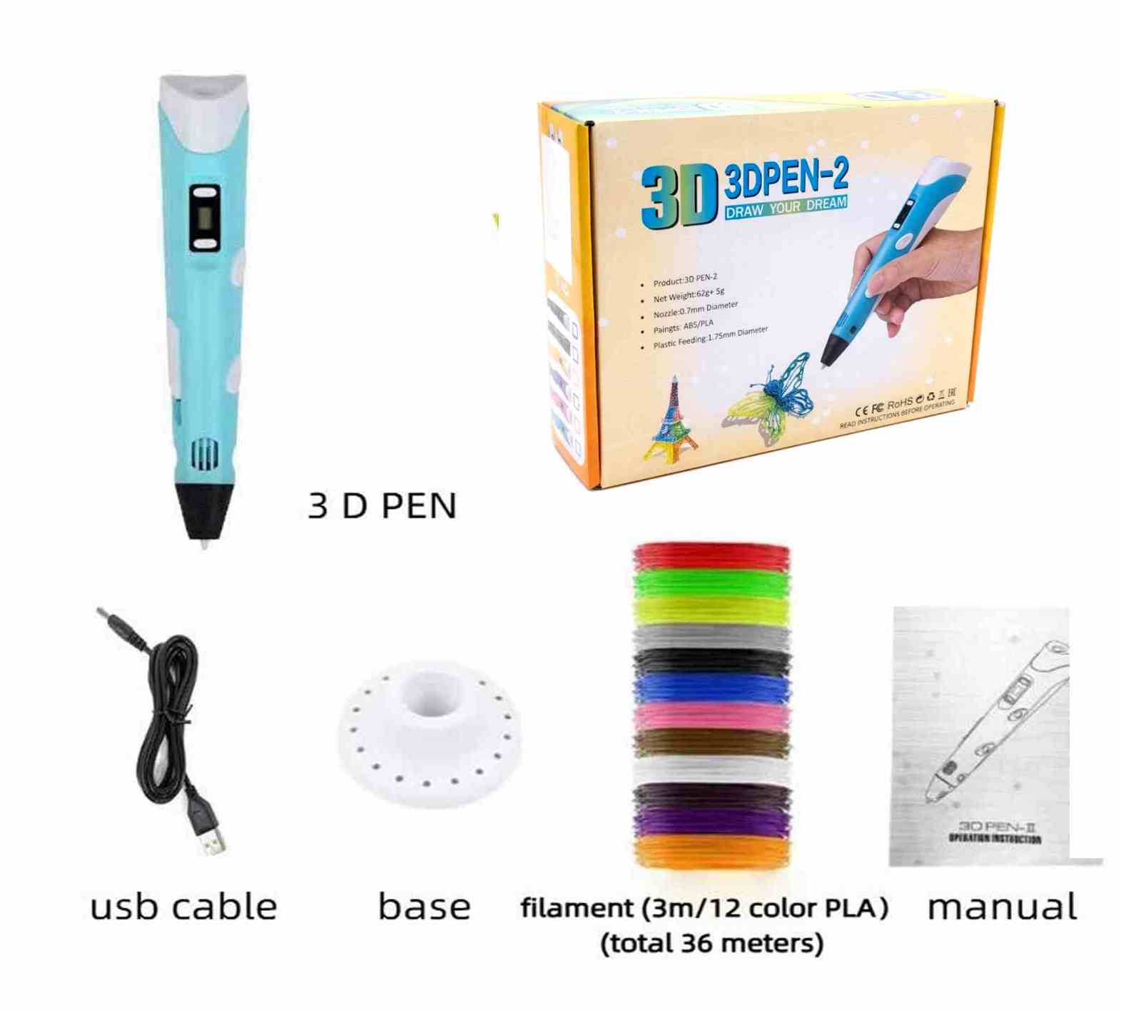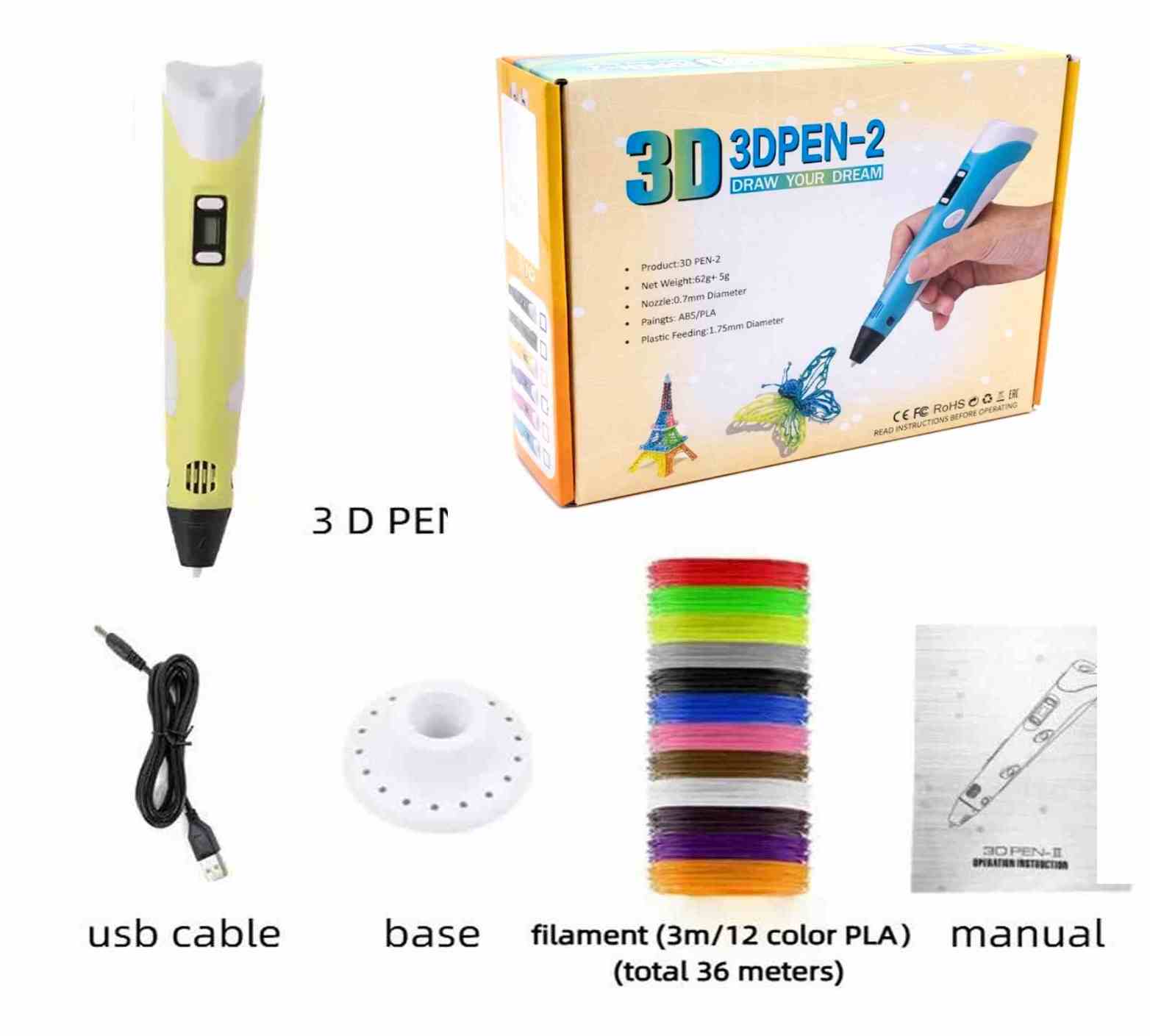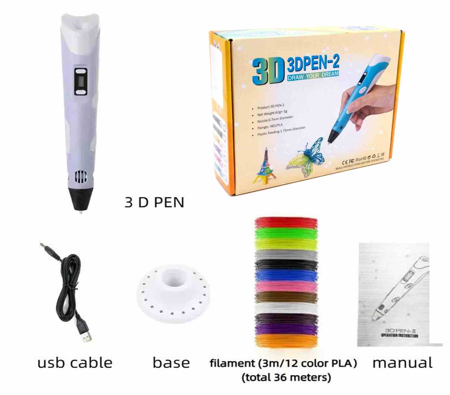 Ручка 3Д, с пластиком 12цвет*3м, ABS/PLA, в кор. 20*15*6см