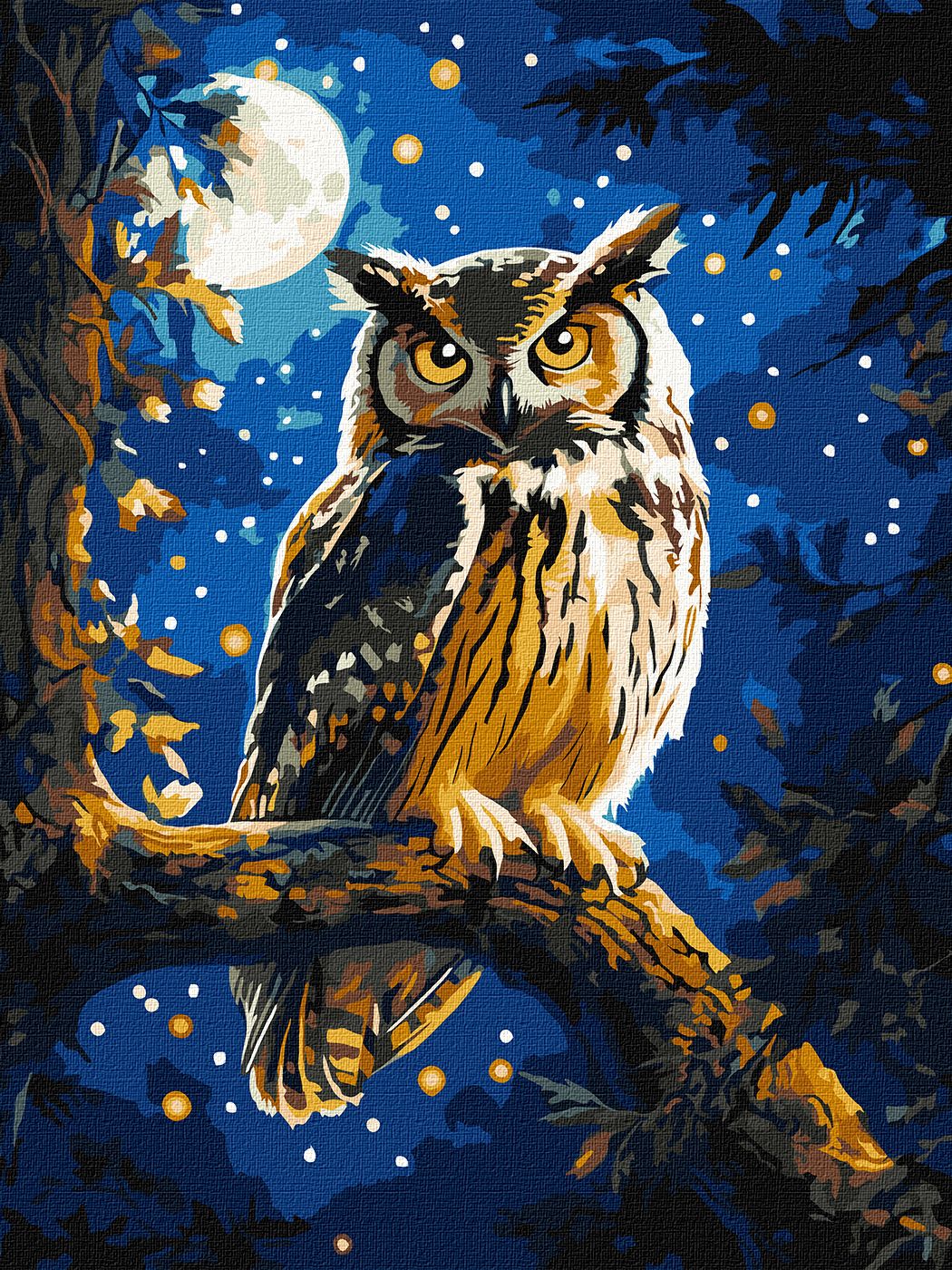 Картина по номерам "Ночная сова с красками металлик extra" 30х40см, термопакет, ТМ Идейка, Украин