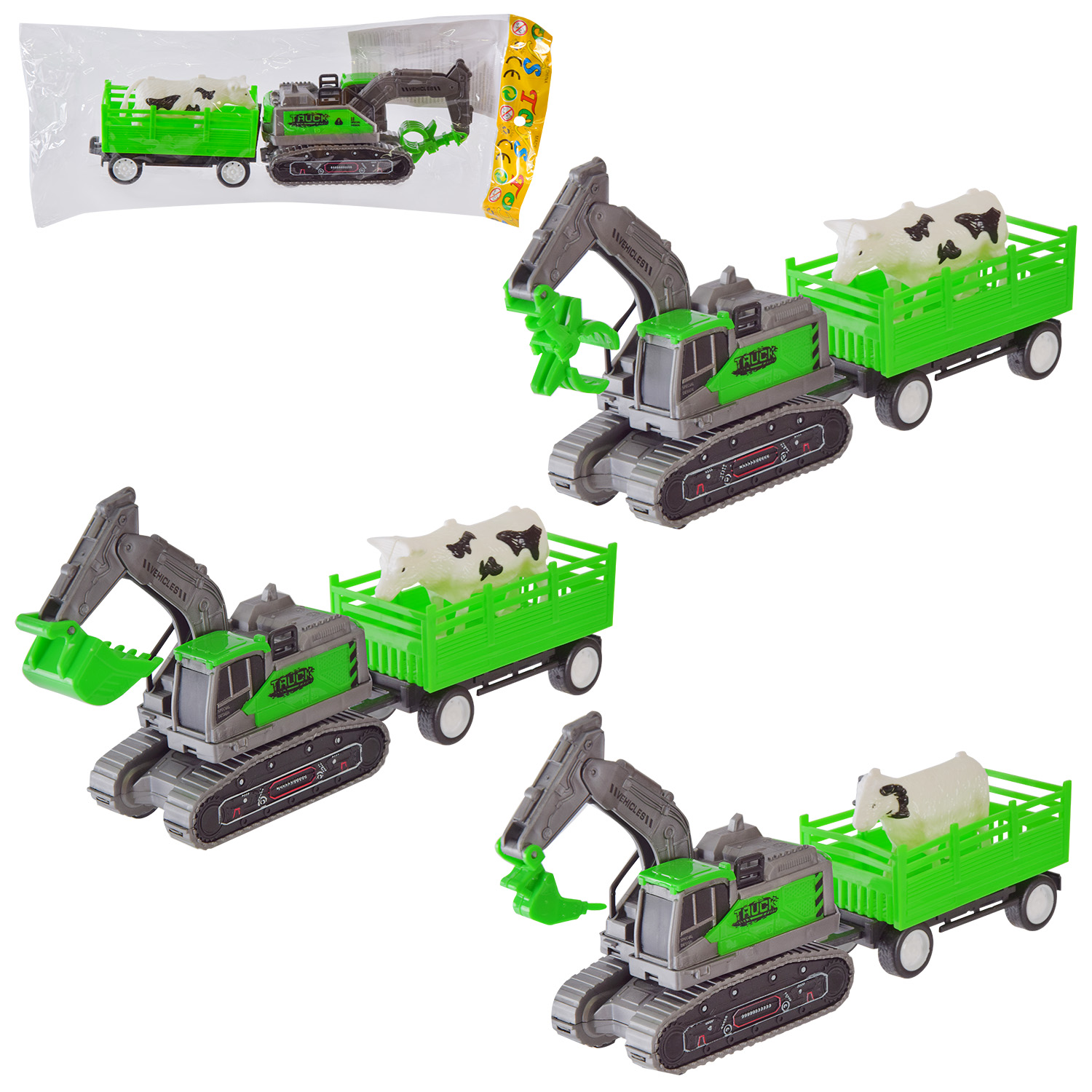 Стройтехника с прицепом, 23см, подвиж. детали, 3 вида, пак. 23*5,5*6см (168шт)