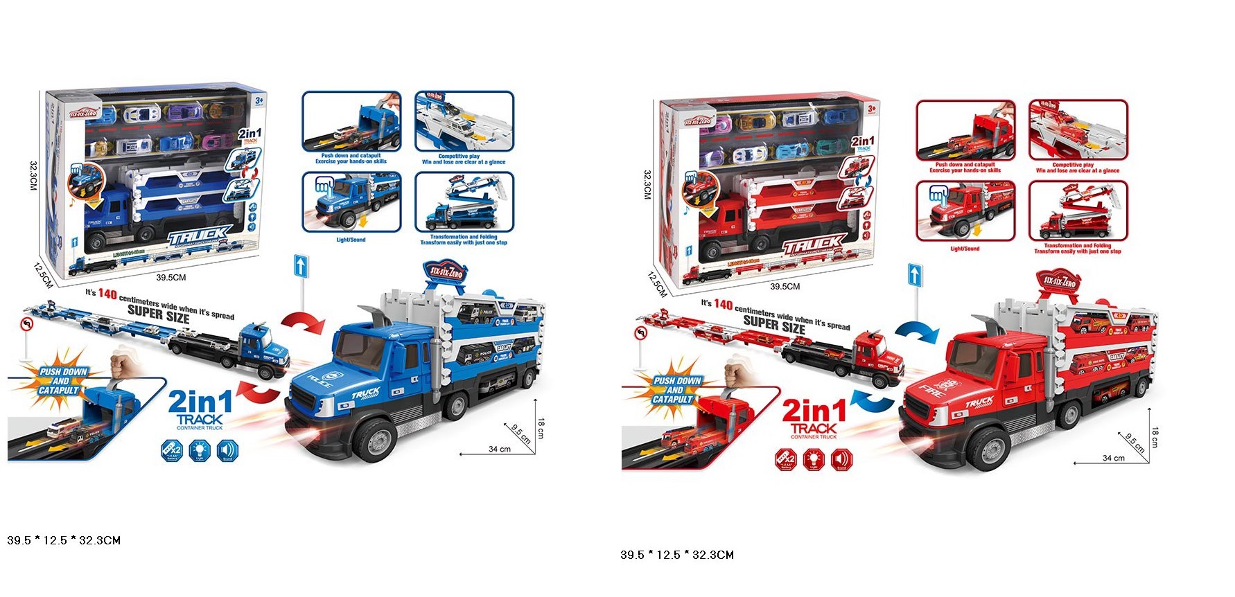 Трейлер бат. 2 вида, свет, звук, машинки в наборе, в кор. 39,5*12,5*32,3см (18шт/2)