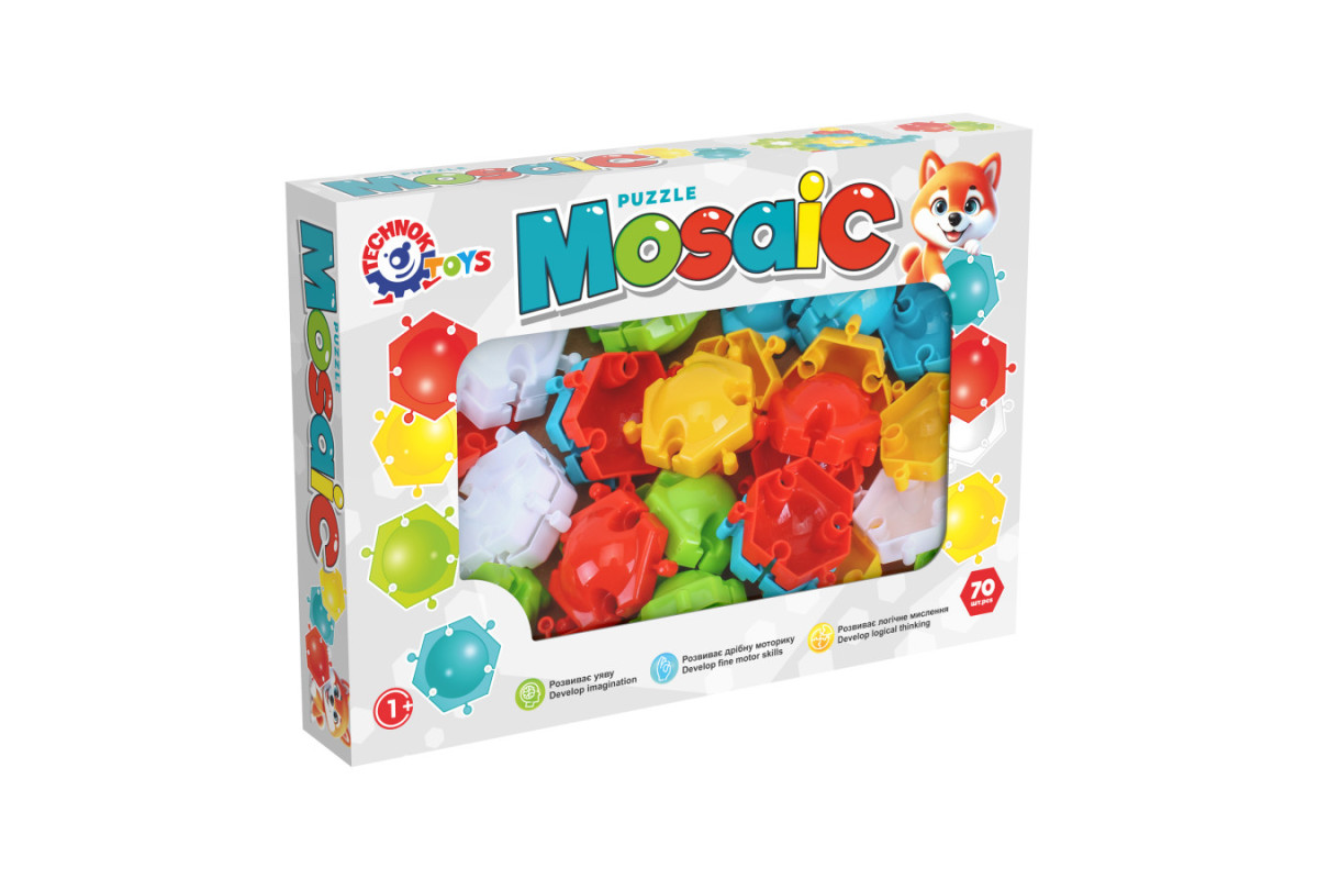 Мозаика – пазлы, 70 ярких шестиугольных фишек размером 40мм, в кор. 29*20*5см, ТМ Технок, Украина