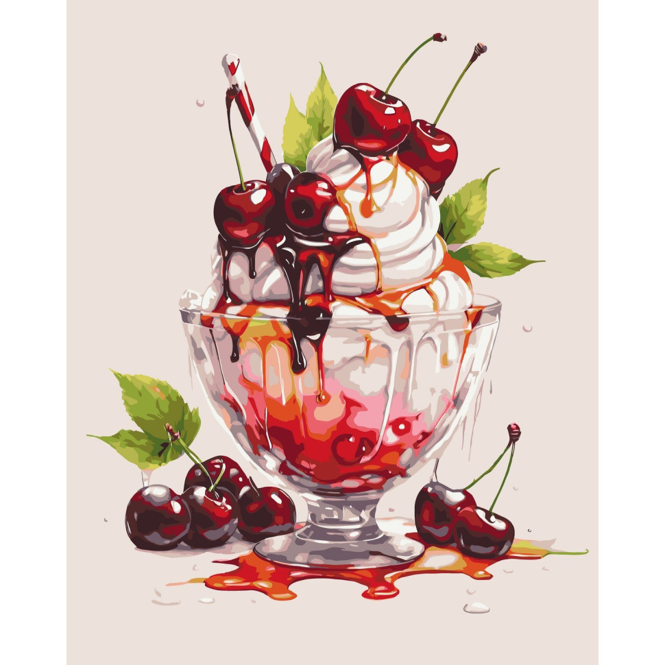 Картина по номерам "Вишневое мороженое" лак 40*50см, термопакет, ТМ ART Craft, Украина