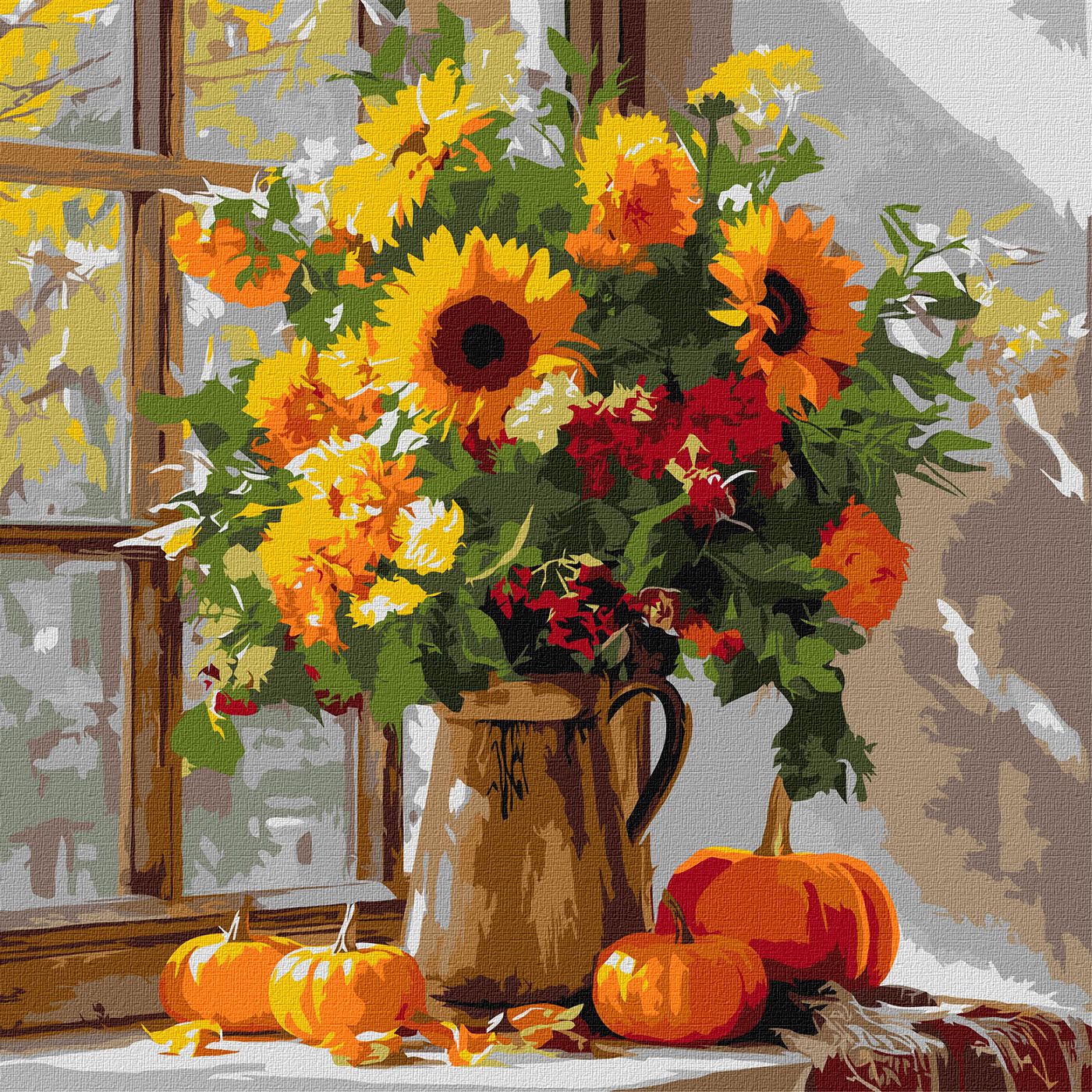 Картина по номерам "Осенний букет из подсолнухов" 40x40см, термопакет, ТМ Идейка, Украина