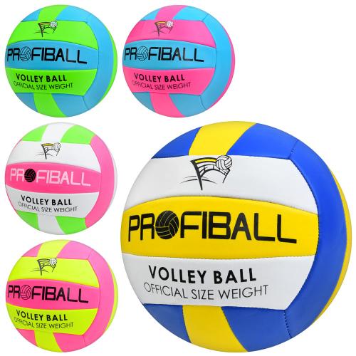 Мяч волейбольный PROFIBALL, офиц.размер, ПВХ 2мм, 2 слоя, 18 панелей, 5 цветов 260*280г (30шт)