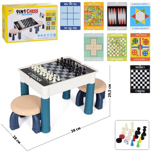Игровой столик Настольная игра 9в1, столик 38*28*29,5см, стул, шахматы, шашки, фишки, кор. 43*29*11,5см (12шт)
