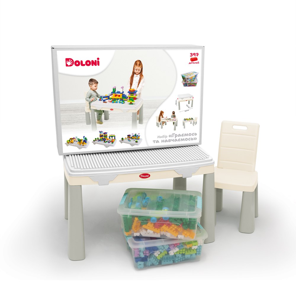 Набор "Играем и учимся" (в наборе стол, стул, конструктор Аквапарк / Парк развлечений / Мост 486 детали в контейнере для хранения), кор. 85*58*22см, ТМ Долони, Україна