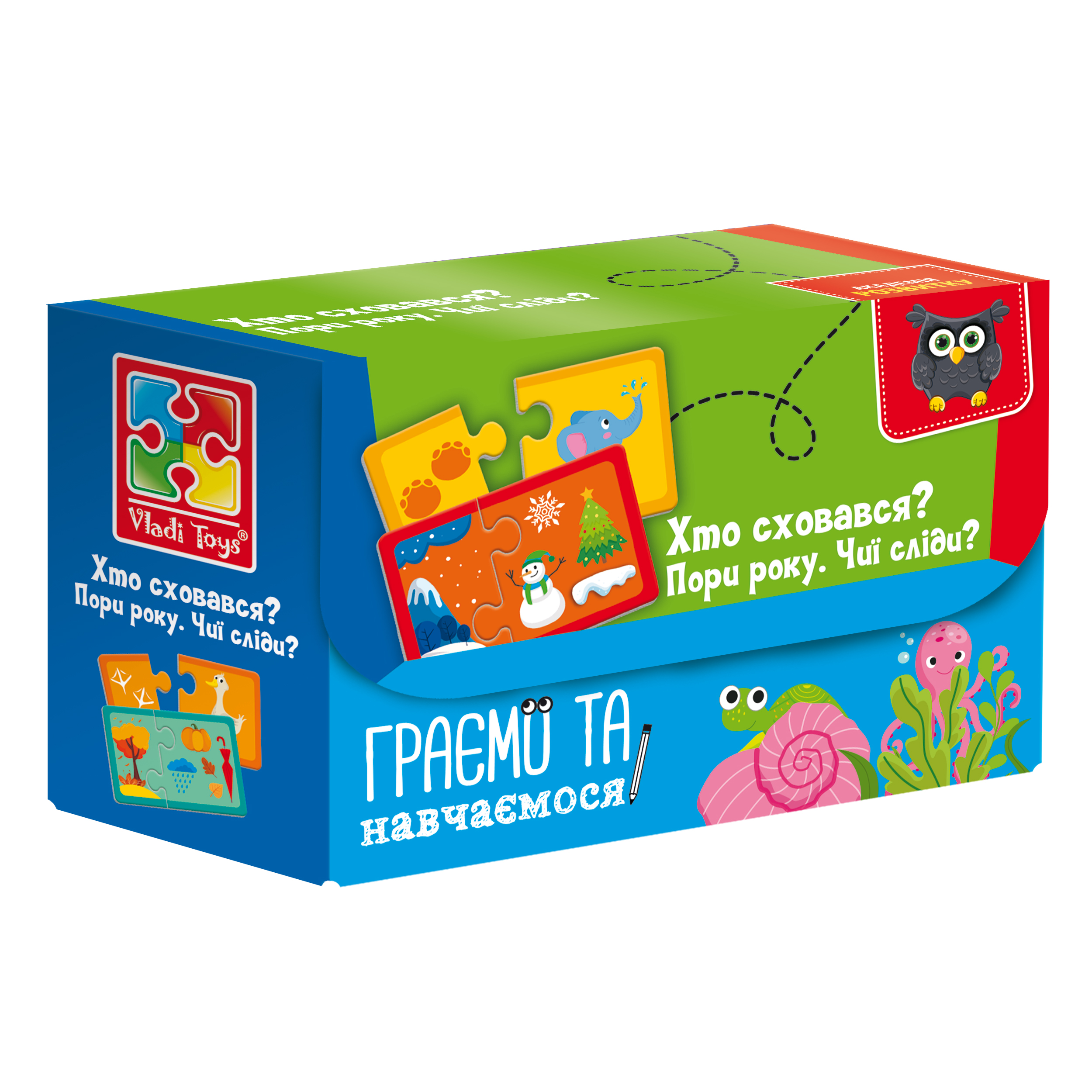 Пазлы "Знайди пару. Пори року. Чиї сліди? Хто заховався" (укр), ТМ Vladi Toys, Украина