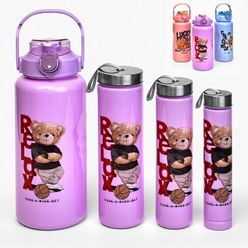 Бутылки для воды спортивные 4 в 1 (300/600/900/2000мл), пак. 30*15см (48шт)