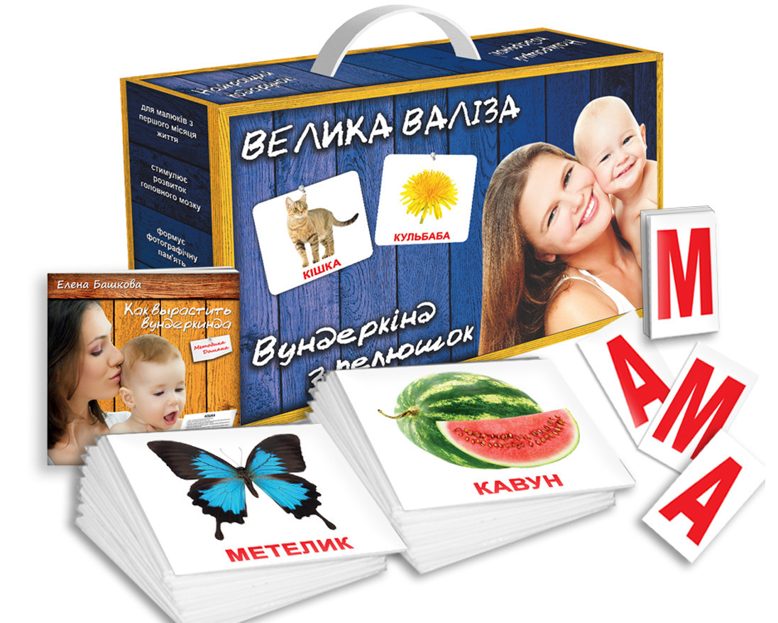 Подарочный набор "ВЕЛИКА валіза" на укр. яз.(21 набор больших карточек с фактами, подарок: книга) 36*21*8см, ТМ Вундеркинд с пеленок, Украина