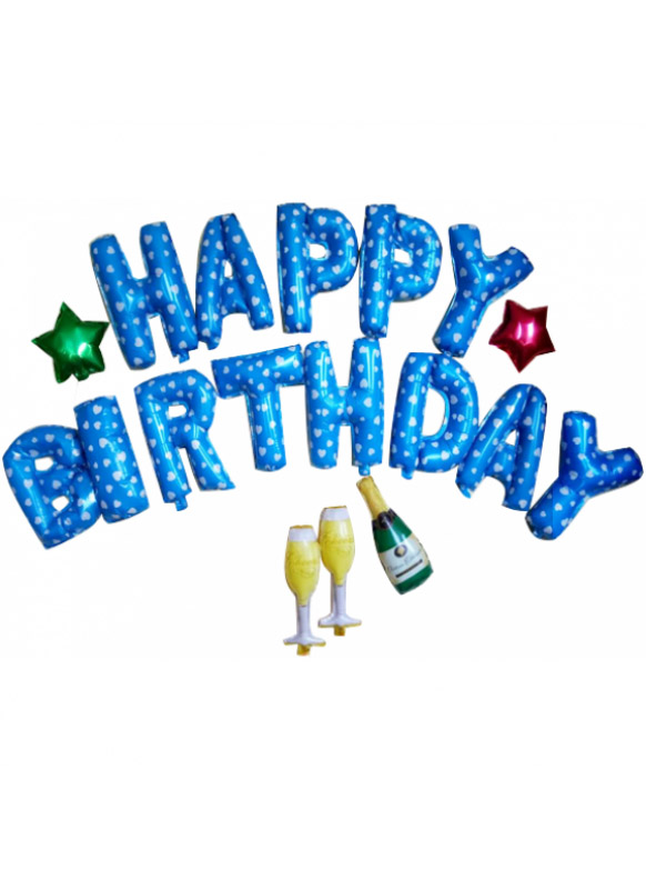 Набор фольгированных шаров "Happy Birthday" с бокалами голубой, в пак. 24*16см, ТМ MEGAZayka