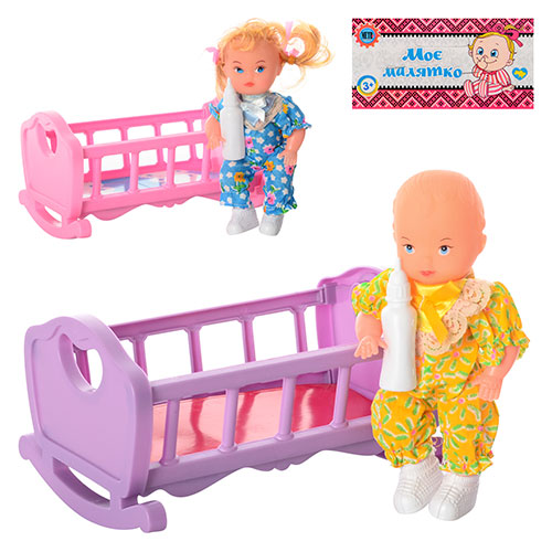 Кроватка-качалка с куклой 15,5см, бутылочка, 2 вида, в пак. 15*26*4см (192шт)