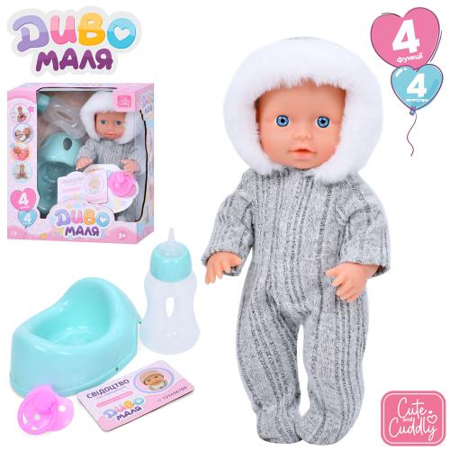 Пупс 33см, пьет-писает, звук+музыка(укр), песня, горшок, бутылочка, соска, подгузник, 2 вида, на бат(табл), в кор. 30*39*17,5см (16шт)
