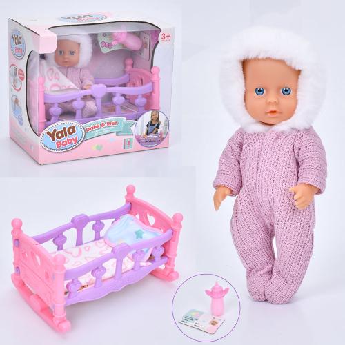Пупс 21см, пьет-писает, кроватка 24*14*14см, подушка, одеяло, бутылочка, в кор. 25,5*22,5*17см (24шт)