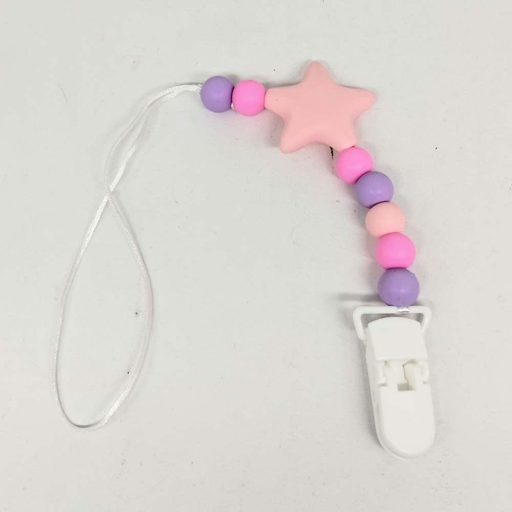 Цепочка для пустышки силиконовая "Звезда" розовый, в пак. 14*10см, ТМ MEGAZayka