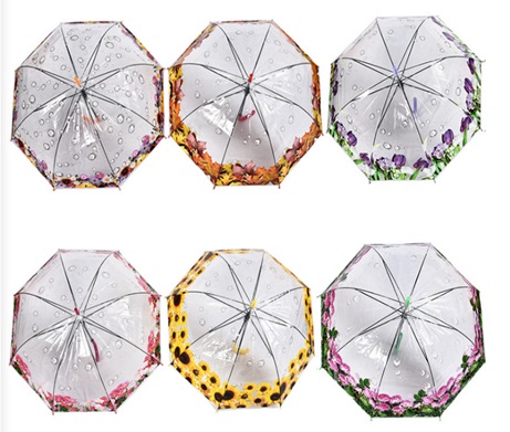 Зонтик детская длина 65,5см, трость 62см, диаметр 86,5см, спица 48см, клеенка, 4 вида, в пакете (30шт)