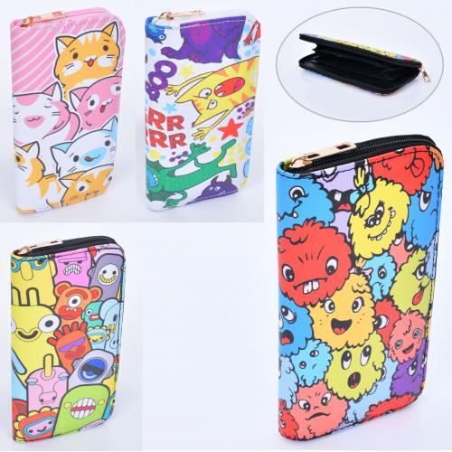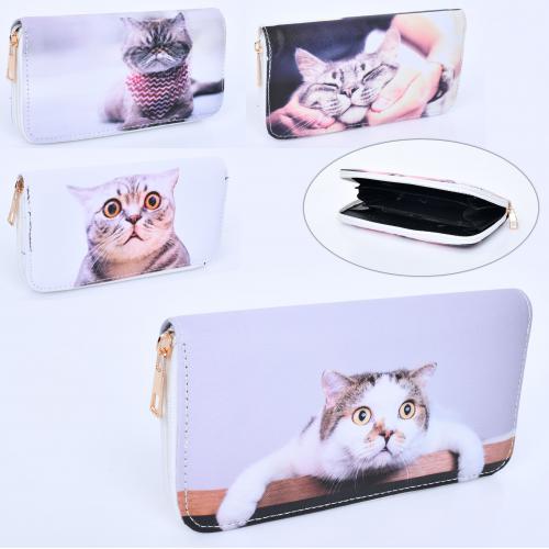 Кошелек 20*10*2,5см, застежка-молния, 4 отделения, карманы, 4 вида (кот), пак. 20*10*2,5см (120шт)