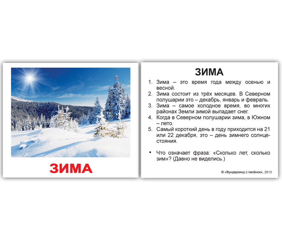 Карточки мини русские с фактами "Времена года" 40 карт., в пак. 8*10см, ТМ Вундеркинд с пеленок