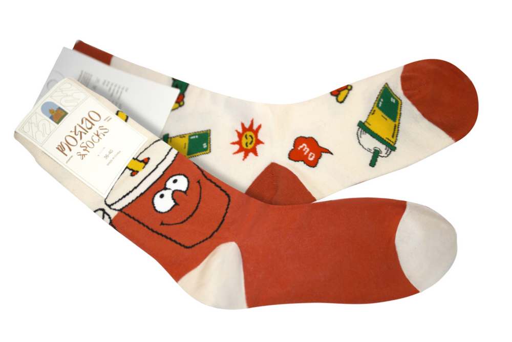 Носки высокие Moxiao принт. Стакан с трубочкой разм. 36-40, пак. 22*8см