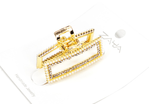 Краб для волос металлический прямоугольник золотистый 7*4см, пак. 8*6см (1шт)