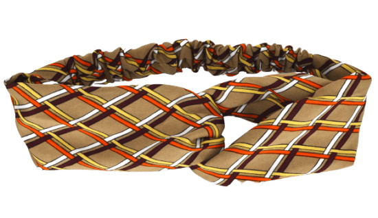 Повязка на голову "клеточка" песочная 1шт, пак. 15*17см