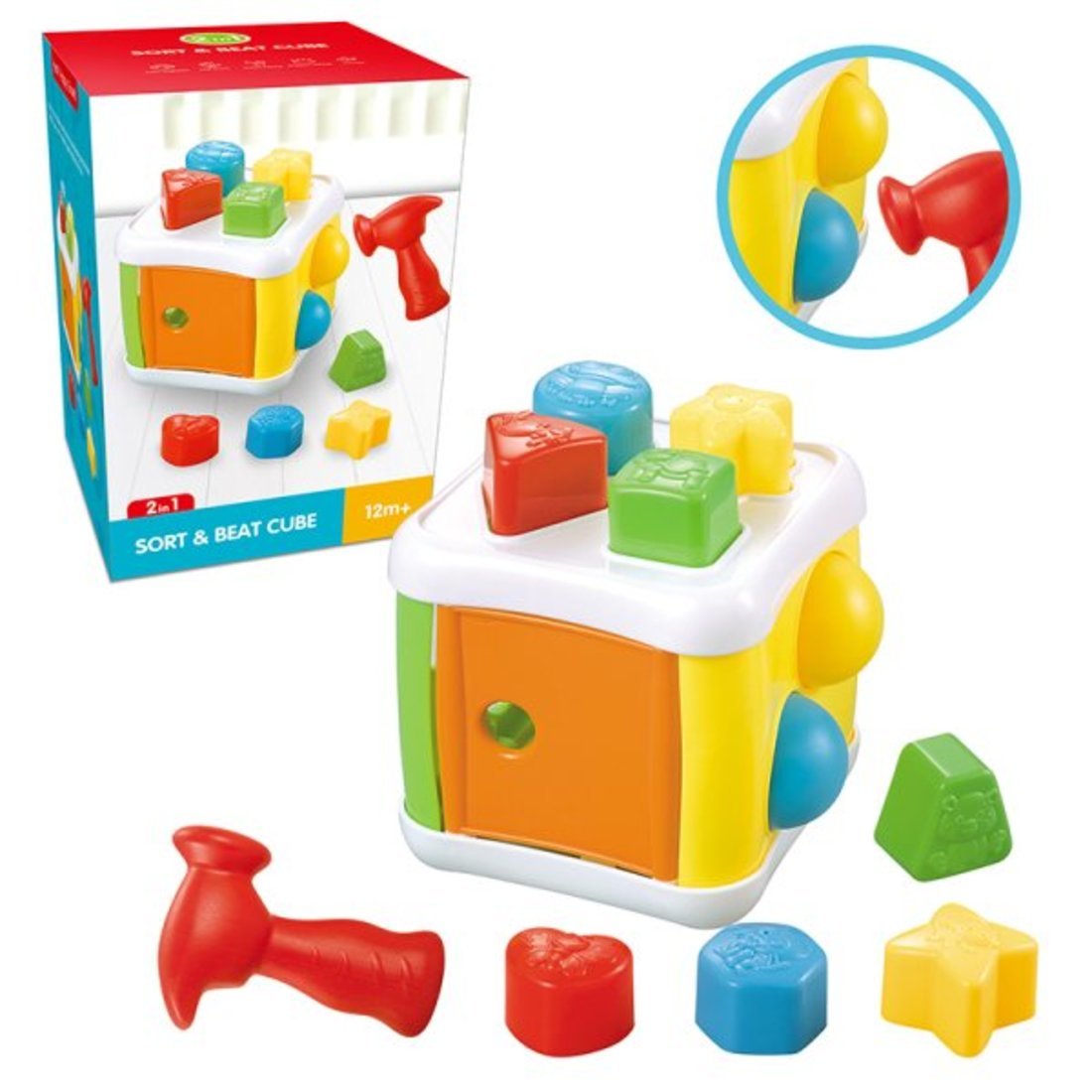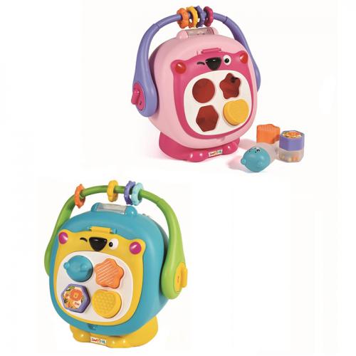 Логика-сортер 16*13см, грани-резинки, фигуры 7шт (погремушка, брызгалка/пискавка), игровая панель с креплением (звук, свет, шарилка, шестерни, подвижные детали) на батар., в кор. 14,5*19,5*14,5см (12шт)