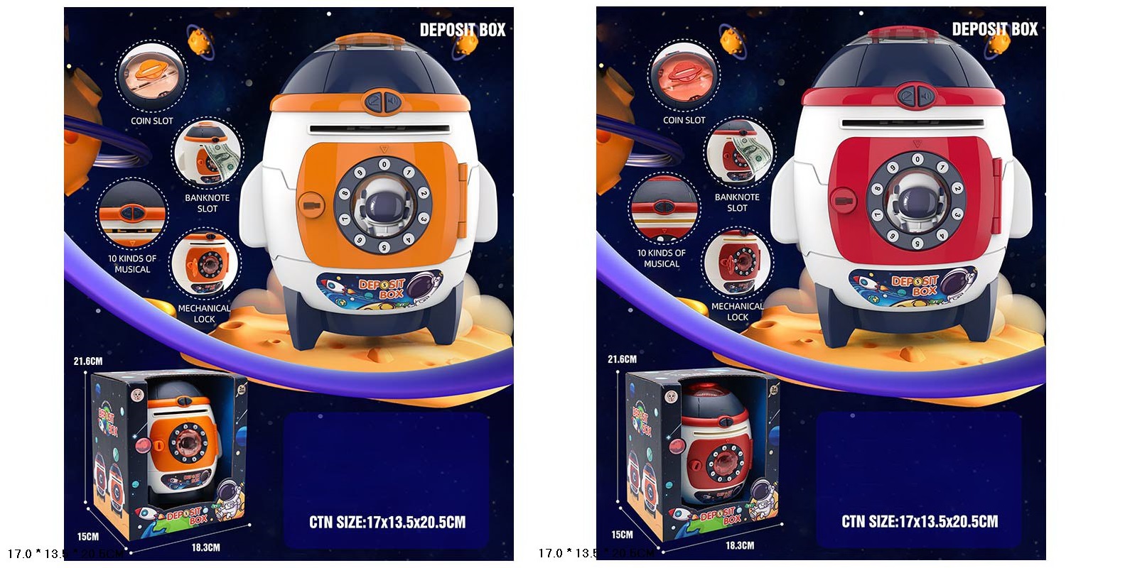 Копилка-сейф электроная Ракета, музыка, 2 цвета, в кор. 21,6*15*18,3см (36шт/2)
