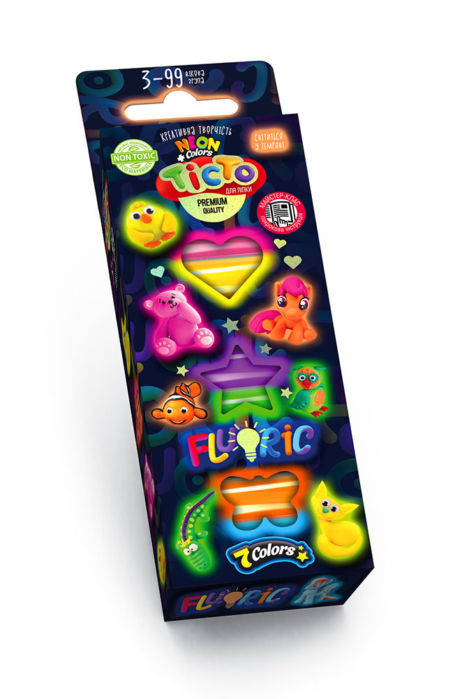 Набор для творчества "Тесто для лепки "Flouric", 7 цветов, рус., в кор. 6,5*19,5*2см (30шт)