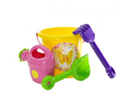 Набор песочный №1 желтый (ведро, лейка, лопатка, грабли) в сетке 15*17*17см, ТМ Долони, Украина