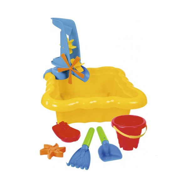 Набор для песка и воды с мельницей, 7 элементов, жовтый, в сетке 35*35*12см, ТМ Wader
