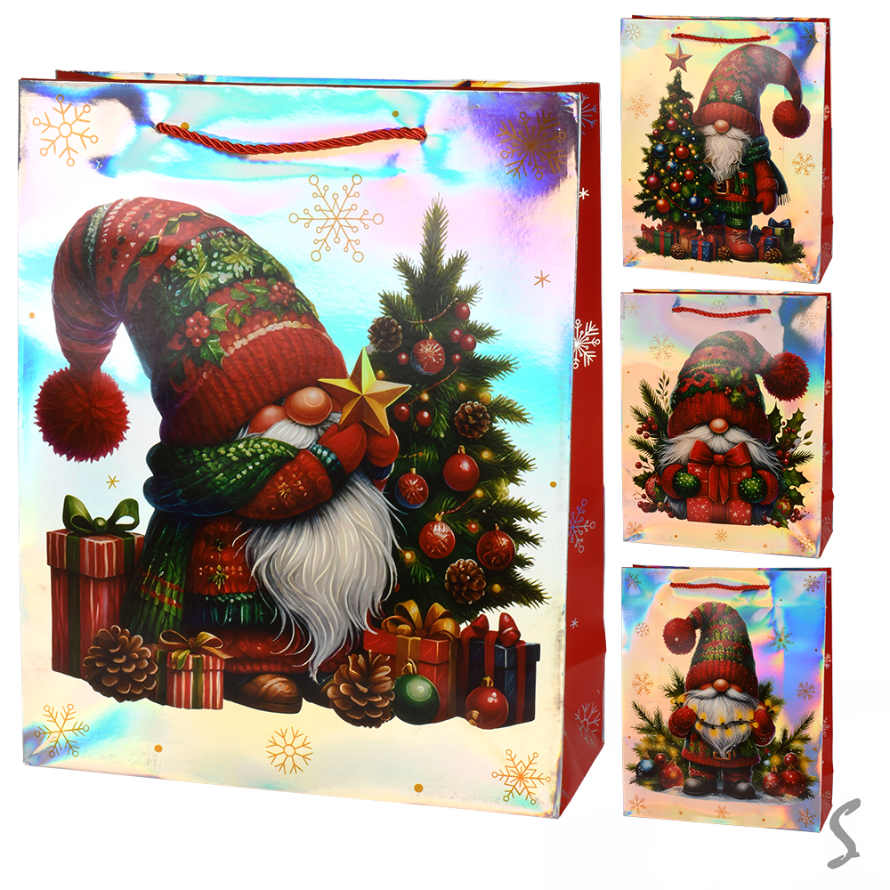 Пакет новогодний бумажный M Gnom 26*32*10см, ЦЕНА ЗА УП. 12ШТ