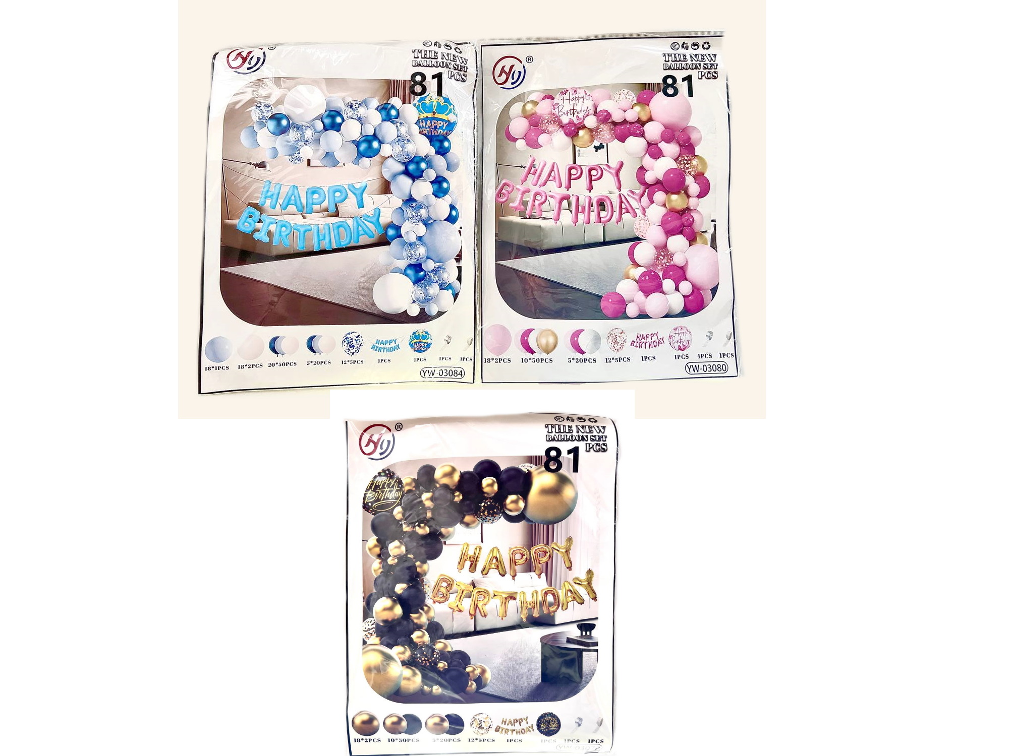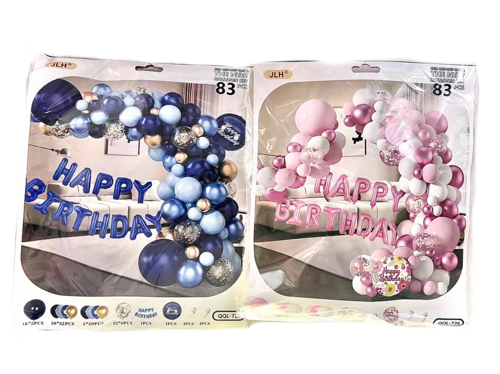 Фотозона из воздушных шаров "Happy Birthday" 83шт/наб, в пак. 35*30см (100наб)