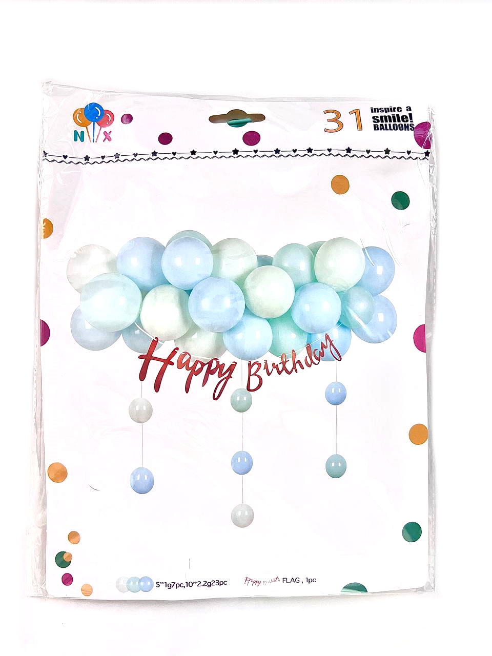 Фотозона из воздушных шаров "Happy Birthday" 31шт/наб, в пак. 30*22см (120наб)