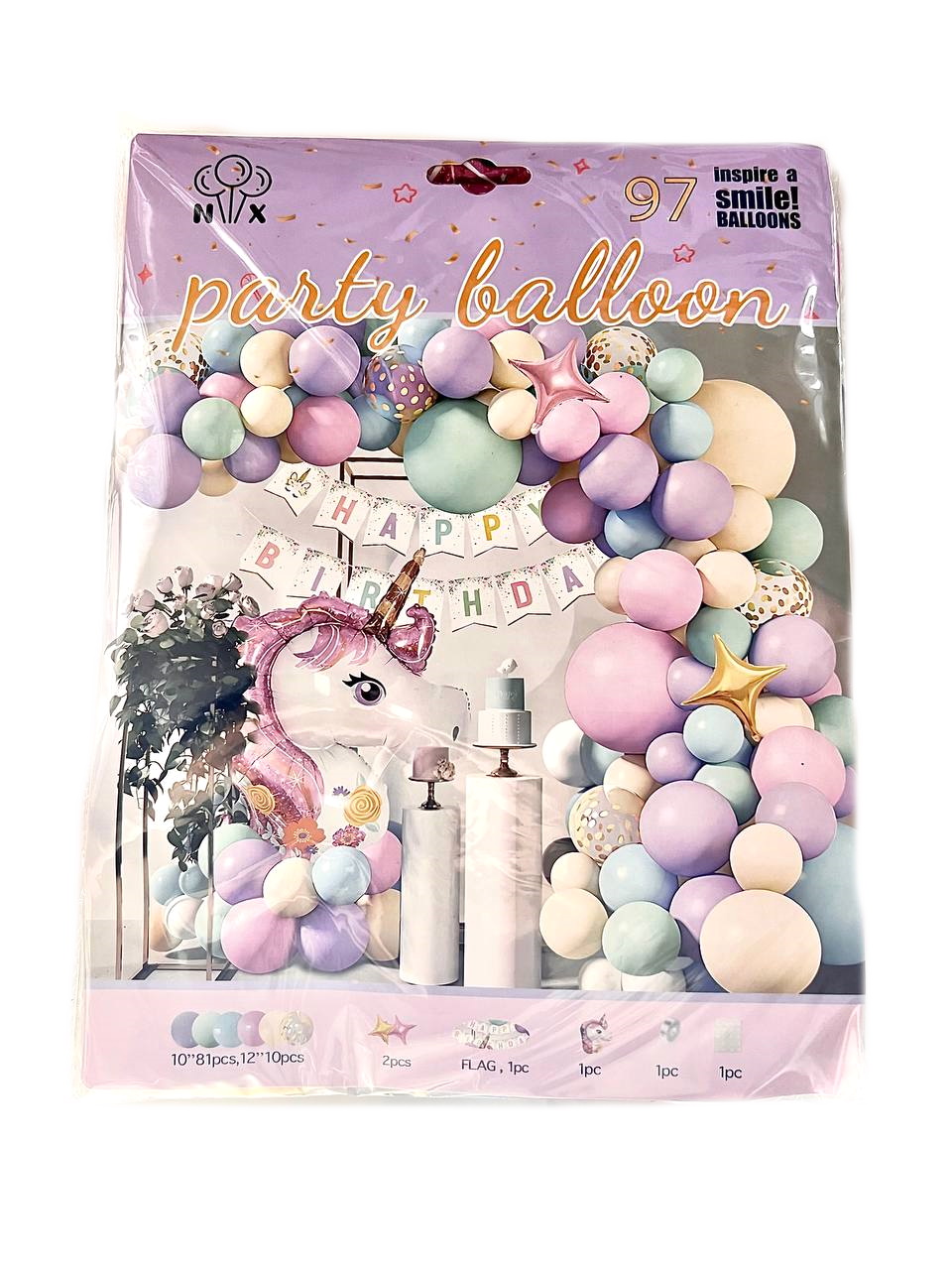 Фотозона из воздушных шаров "Happy Birthday" 95шт/наб, в пак. 30*22см (120наб)