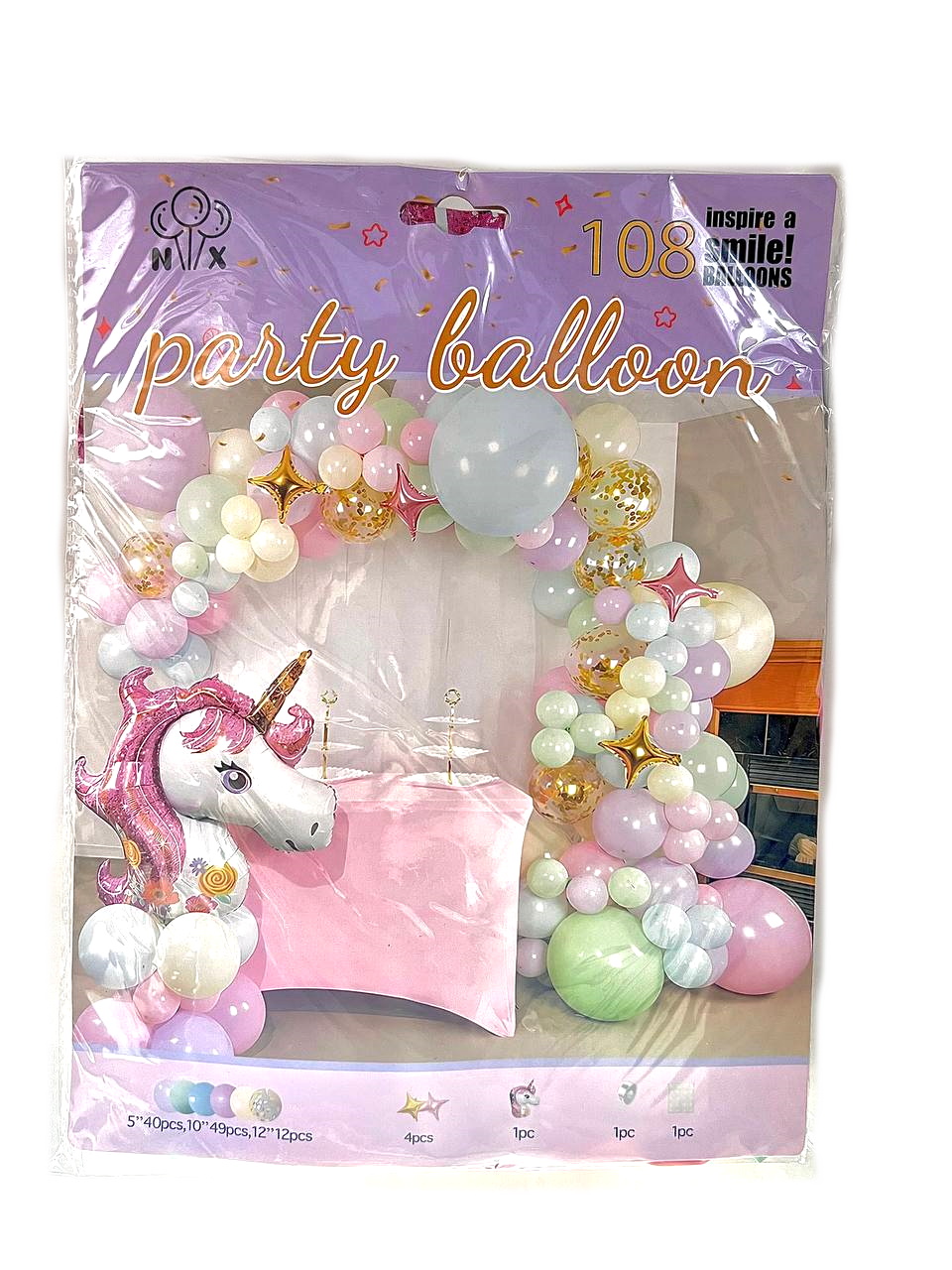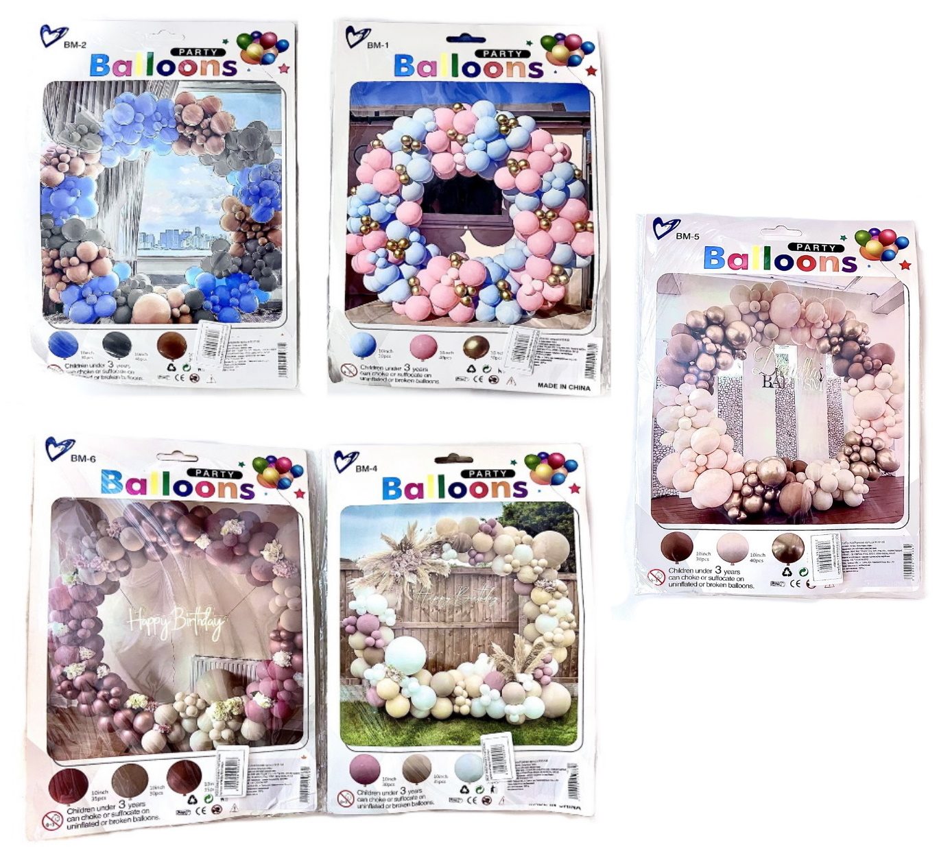 Фотозона из воздушных шаров "Happy Birthday" 106шт/наб, в пак. 30*22см (120наб)