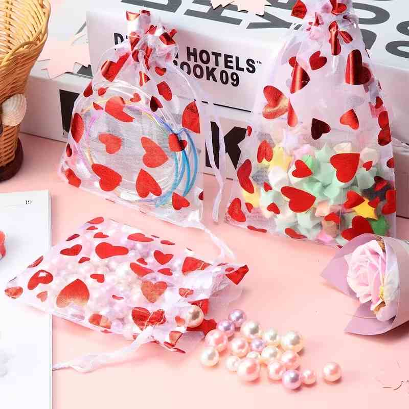 Мешочки 8*10см для подарков из органзы. с сердцами ЦЕНА УП. 30ШТ, пак. 12*15см