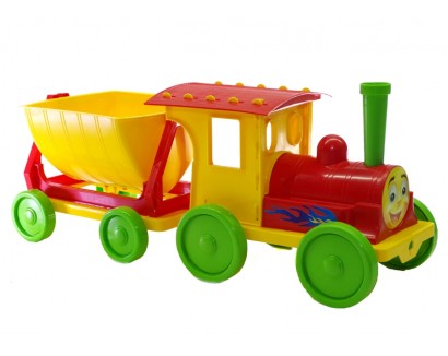 Поезд-конструктор, с 1м прицепом, красный, в сетке 57*22*20см, ТМ Долони, Украина (9шт)