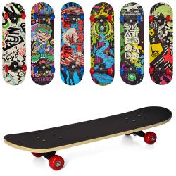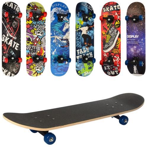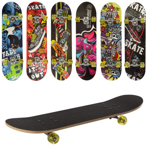 Скейт 79,5*19,5см (наждак), алюм.подвеска, колеса ПУ, 7слоев, 608Z, разобр, 6 видов, пак. (6шт)