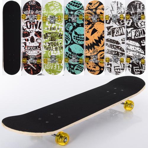 Скейт 78,5*20см, алюм.подвеска, колесаПУ, 7слоев, 6видов, 608Z, разобр, доска в пак. 78*20см (6шт)