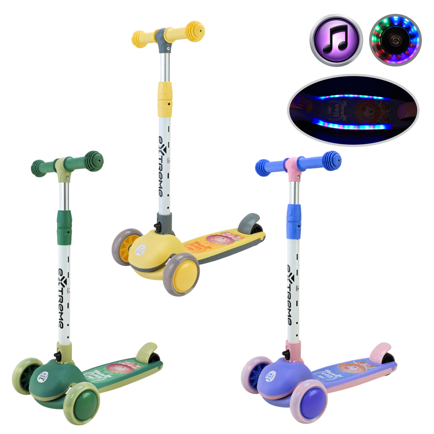 Самокат детский 3-х колесный 3 цвета, колеса PU свет, с родительской ручкой, в кор. 61*16,5*33,5см (6шт)