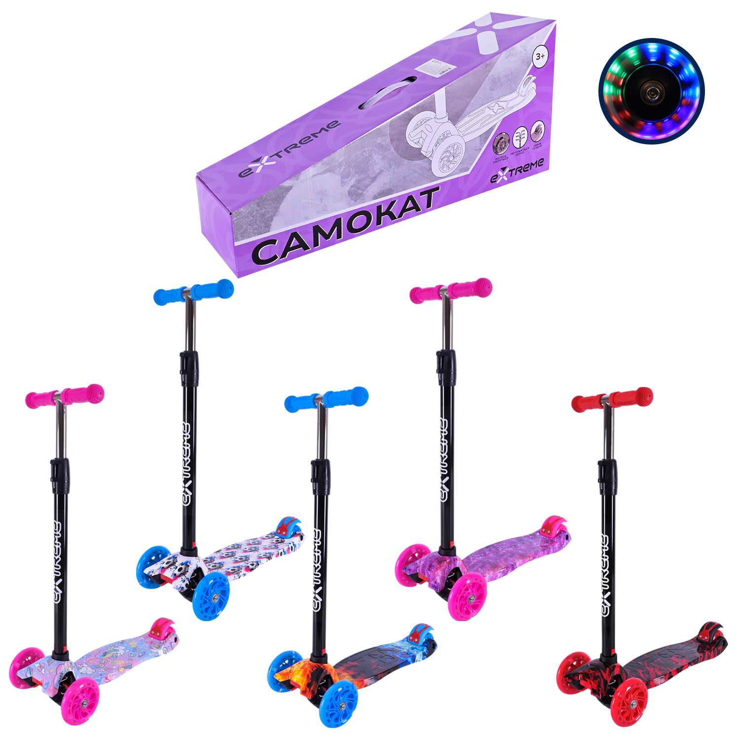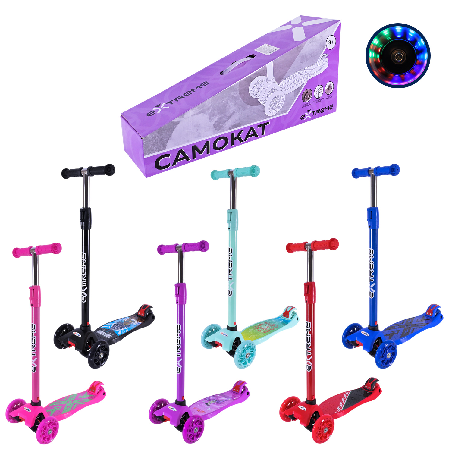 Самокат детский 3-х колесный 3 цвета, 2 колеса, PU свет, заднее пластик, в кор. 70*18*26см (6шт)