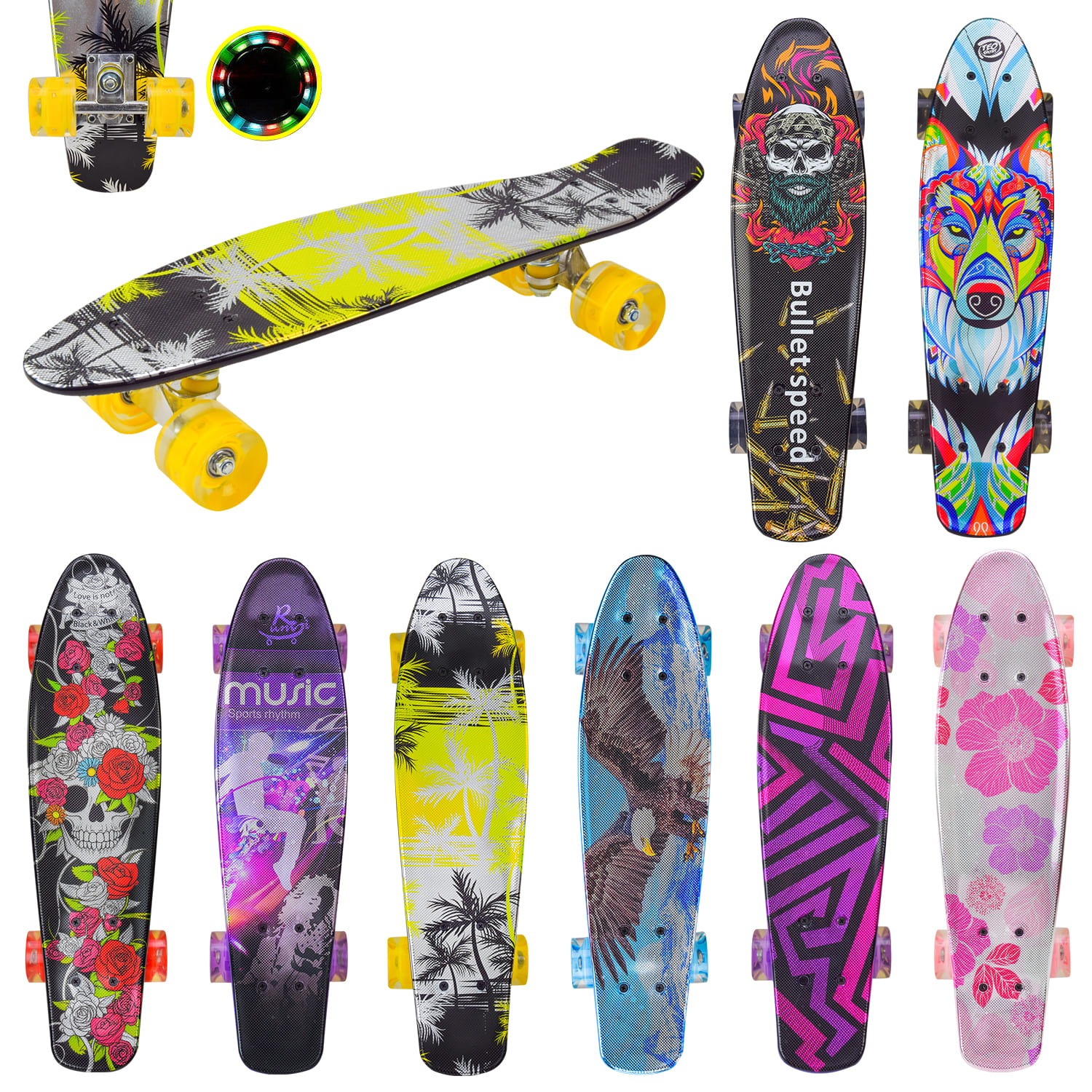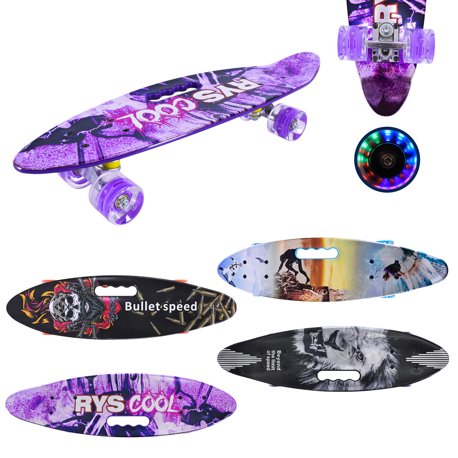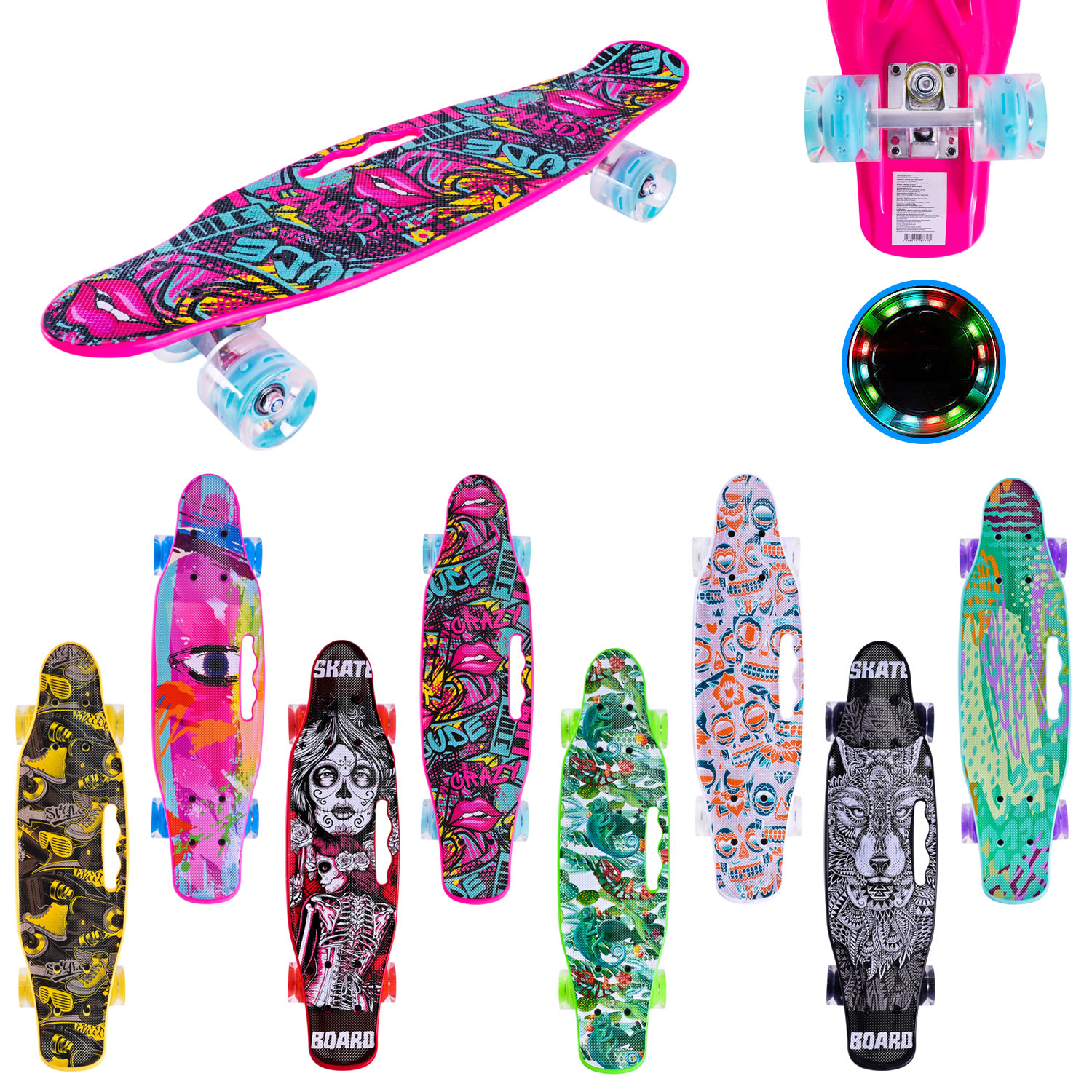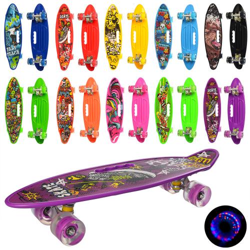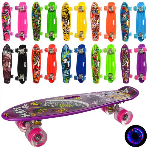 Скейт пенни, 59*16см, алюм.подвеска, колеса ПУ, свет, антискольз, 10 видов, пак. 59*16см (10шт)