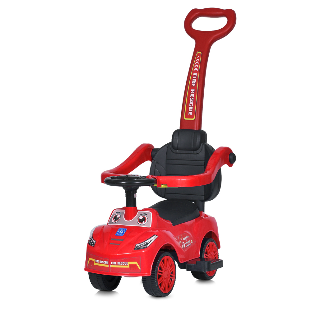Каталка-толокар, родительская ручка, музыка, кож.сиденье, багажник под сиденьем, бат, красный (1шт)