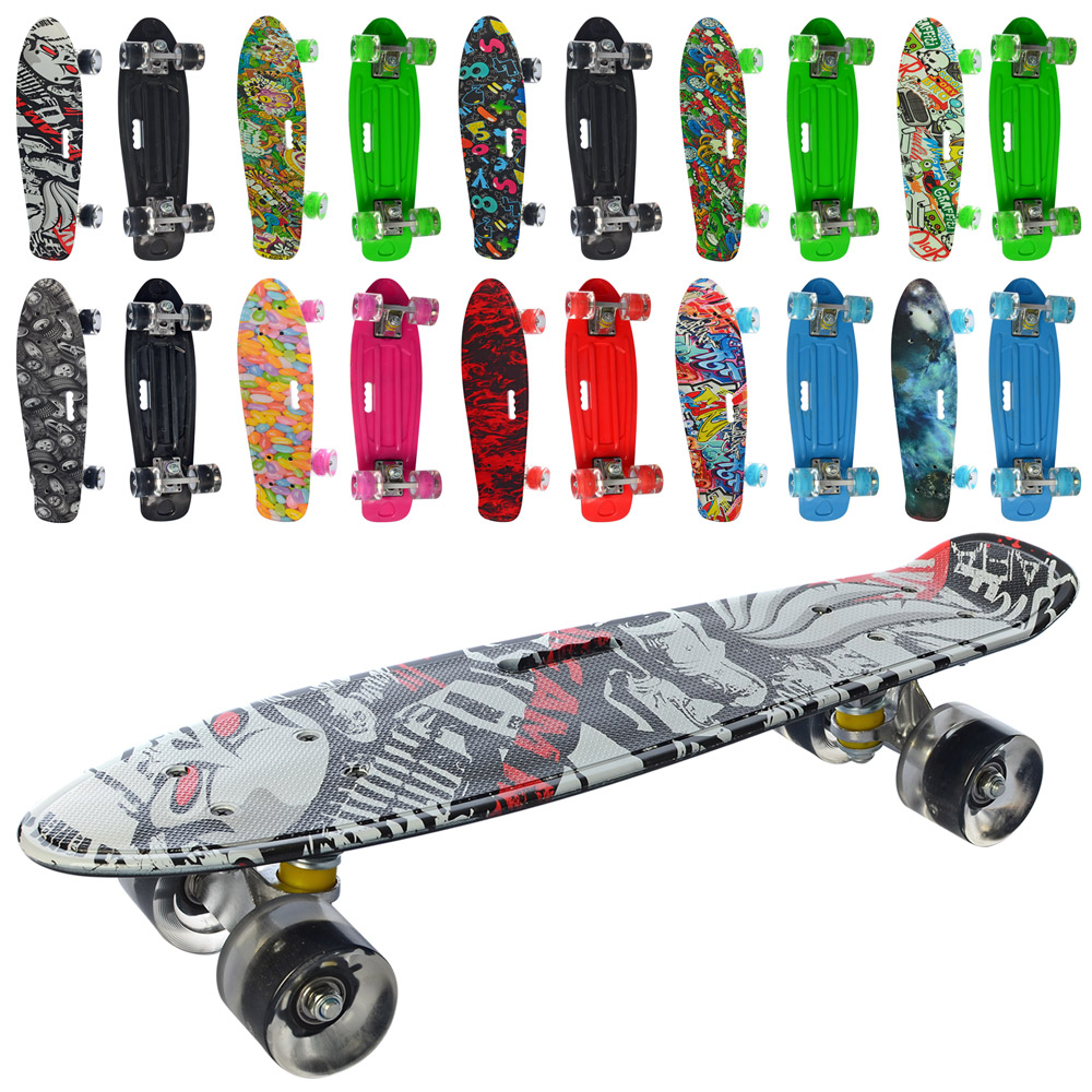 Скейт пенни 55*14,5см, колеса ПУ свет, рисунок, 10 видов, пак. 55*14,5см (10шт)
