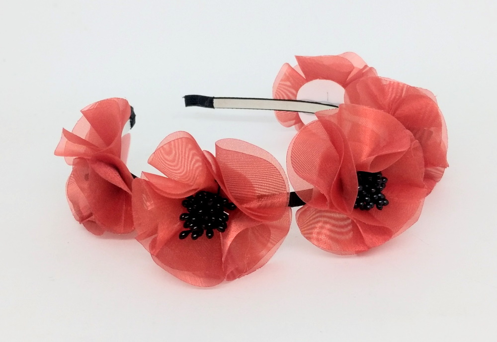 Обруч для волос с объемным красным маком, в пак. 19*17см (1 шт)