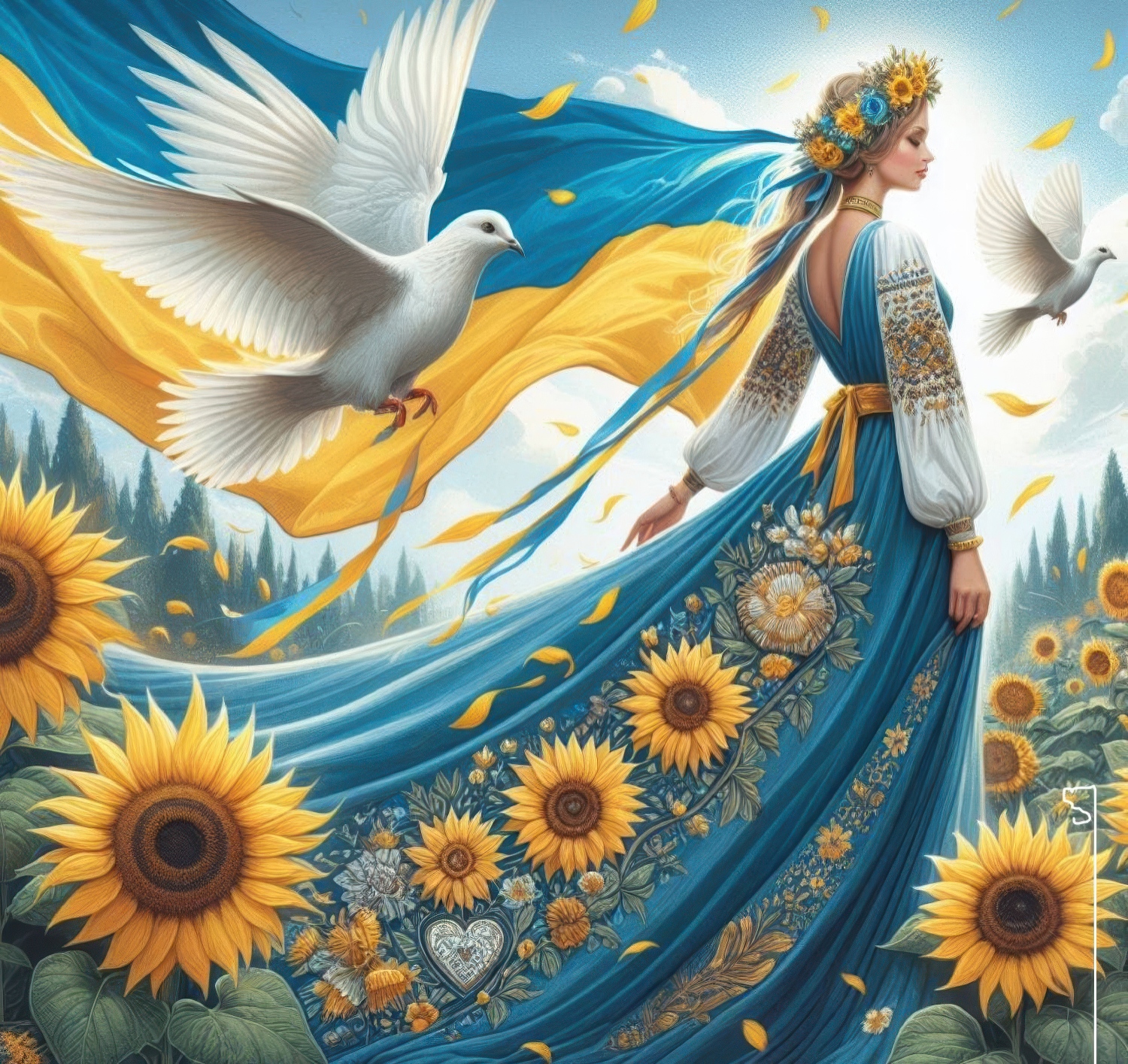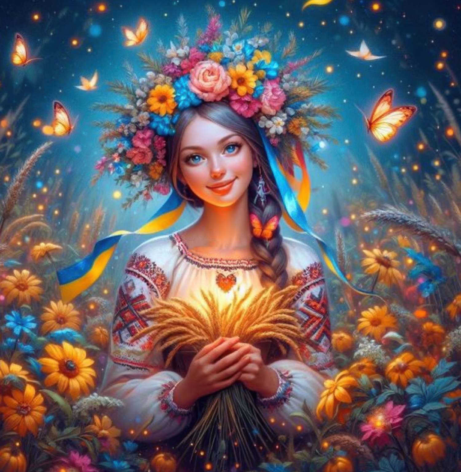 Ободок-венок "украинский" желто синий, в пак. 19*17см (1 шт)