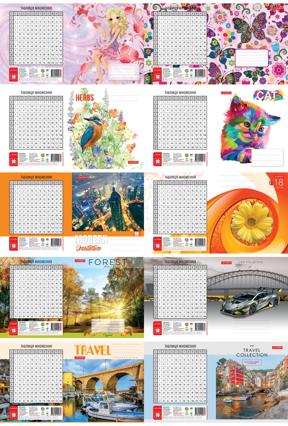 Тетрадь 18 л. # цветная обложка Микс, ЦЕНА ЗА УП. 20ШТ, ТМ Тетрада, Украина