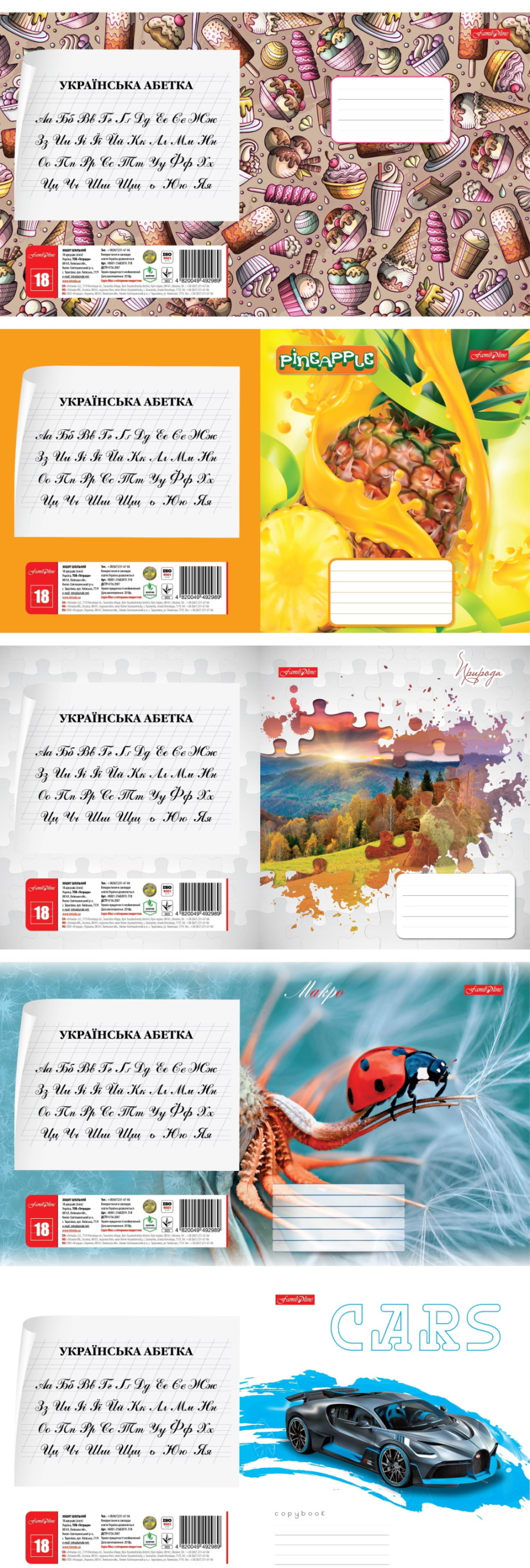 Тетрадь 18 л. = ЦЕНА УП. 20ШТ Фемили Лайн УФ лак, ТМ Тетрада, Украина