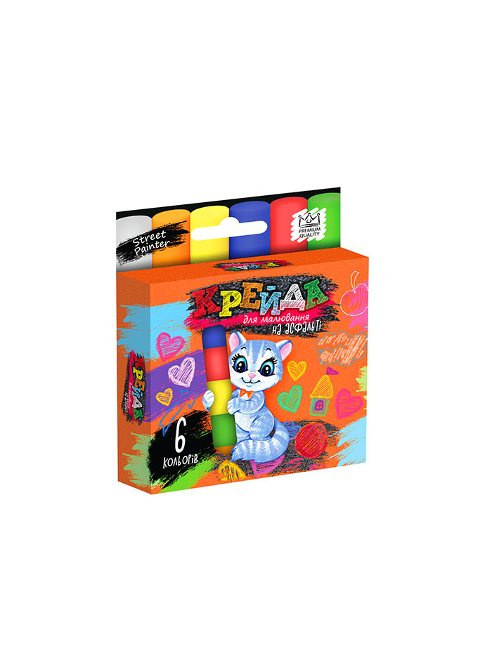 Крейда для малювання на асфальті, тонка, 6шт, укр., в кор. 8*9*2см