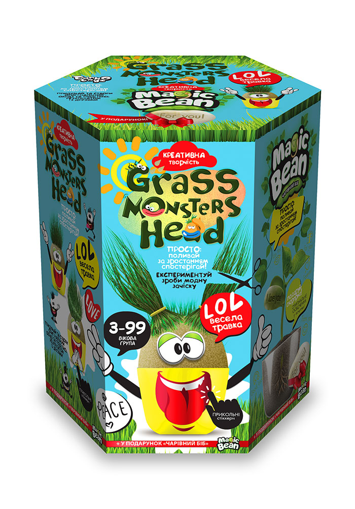 Трав'янчик Grass monsters head Весела трава, укр., в кор. 14*11*10см (8шт)