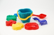 Пісочний набір "Гарлачик" №1 відерце, лопата, граблі, 3 пасочки, сітка 10*7см, ТМ Колорпласт, Україна (30шт)